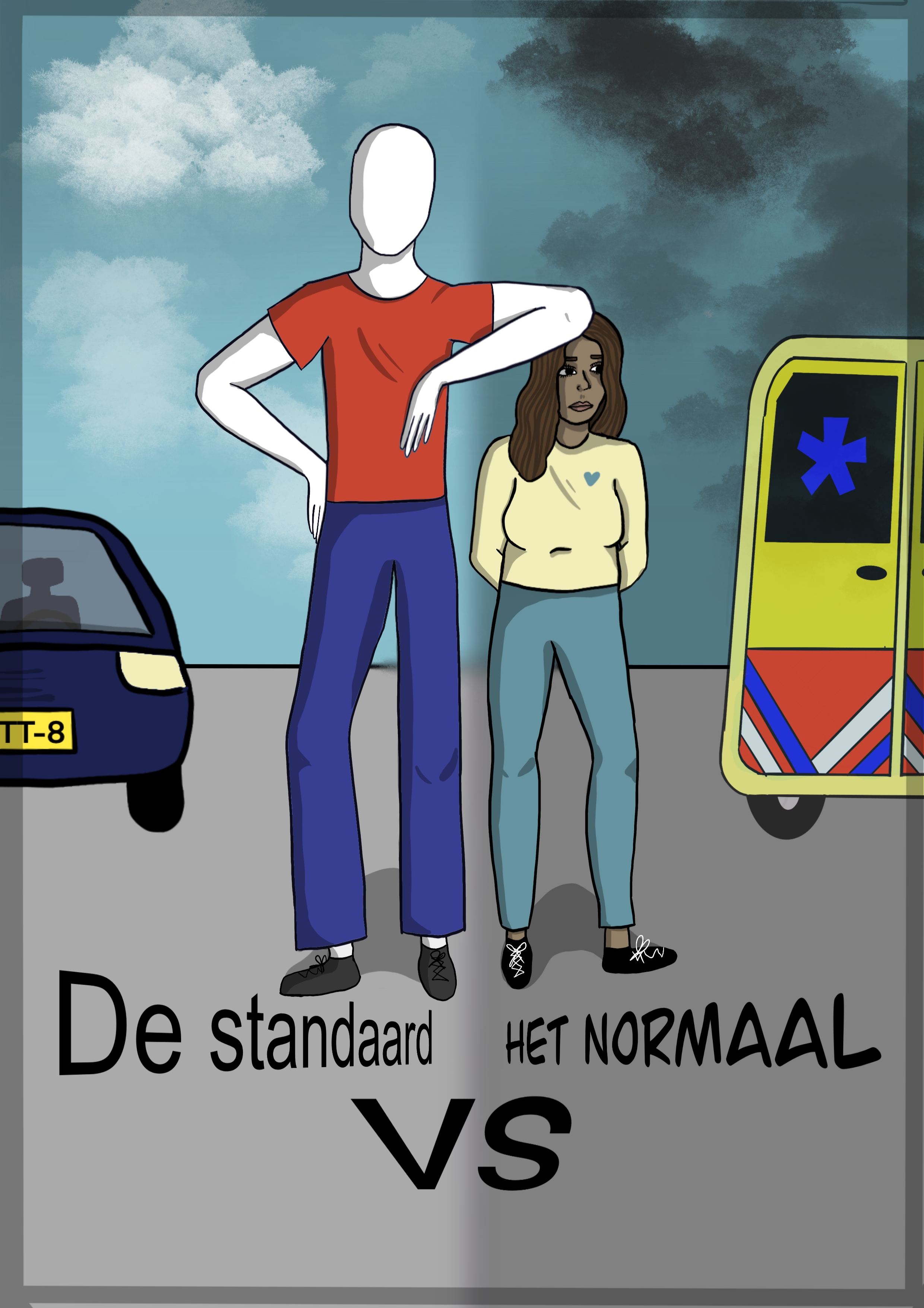 Voor dit project ben ik als ontwerper gaan kijken naar mijn eigen normen en waardes. Ik wilde een ontwerp maken gebaseerd op mijn kernwaarde: gelijkwaardigheid. Met dit in gedachte heb ik een stripboek gemaakt genaamd “De standaard vs het normaal” wat het verhaal verteld over “the reference man” en een normale vrouw. Hierbij komt de vrouw veel obstakels tegen omdat het blijkt dat alles om haar heen gemaakt is voor de standaard witte man van 1 meter 80.